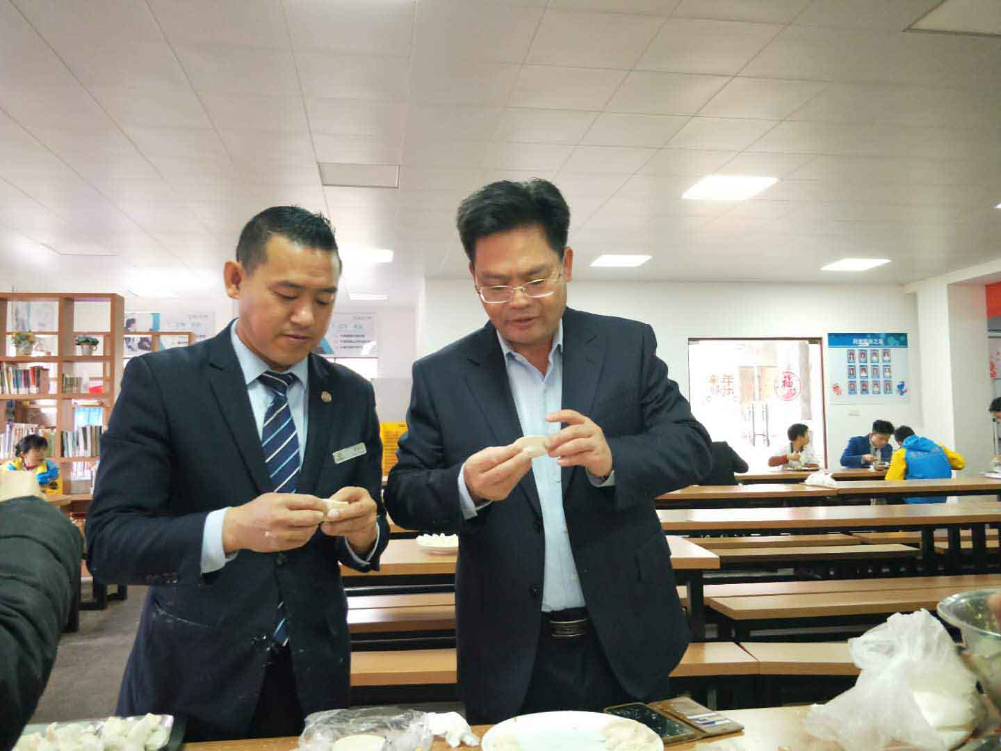 2月10日农历大年初六,河源客天下张小山总经理和管理层在员工饭堂参加“幸运饺子”春节慰问活动,为客天下家人们包饺子、赠祝福、送运气。