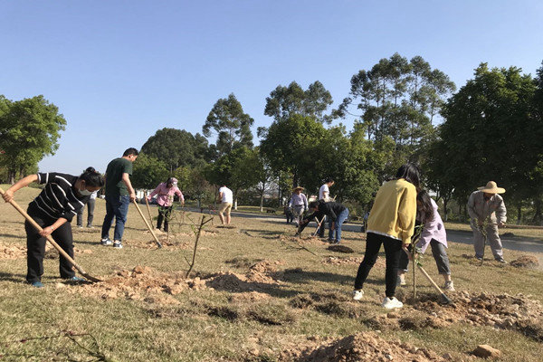 3月8日,东莞公司将三八妇女节及植树节结合,组织安排了女神节主题植树活动,公司总经理陈文龙带领公司员工,一同在景区内种下代表希望的茁壮树苗。客天下人们忙碌的身影在蓝天绿地的映衬下显得尤为生动可爱,劳动的成果更是让景区尽显盎然生机。